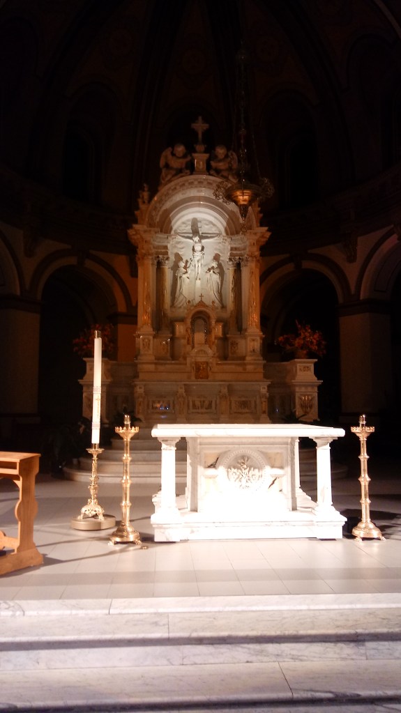 Every once in a while, the veil gets lifted from our eyes and we experience, with a mix of terror and joy, the “holy fear” of the saints as they encounter the presence of God. We are shaken to our core, as we realize, as Jacob did, that this Sacrament is a gate to heaven and we did not know it! (Genesis 28:16-17) That happened to me through a dream. I dreamt I was present at a Mass in the beautiful, cavernous St. Joseph Church in downtown Salem (the Church I attended as a child). In my dream, I was distracted at Mass and seemed to be taking on the role of ushering and directing people and spent the greater part of the Mass in whispered conversations, moving about throughout the nave of the Church. Communion time came, and I, at the last minute, realized what was happening and hurried up to join the line and receive the Eucharist. As I approached the priest, I raised my hands to receive the Eucharist and waited. The priest never said, “The Body of Christ.”